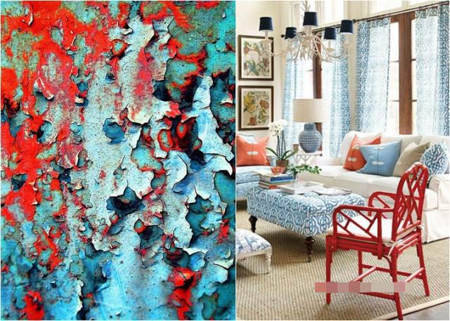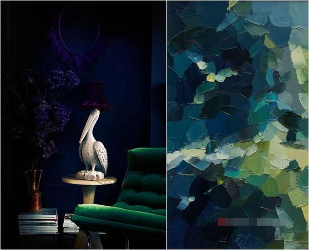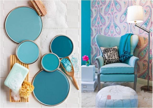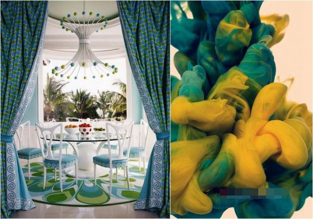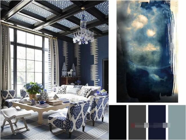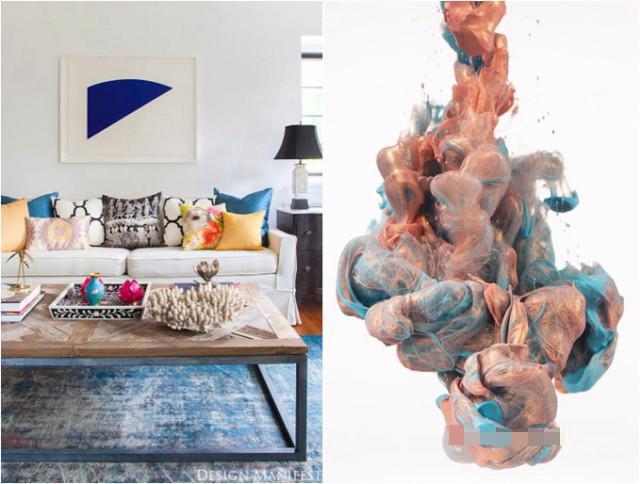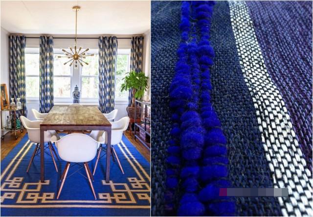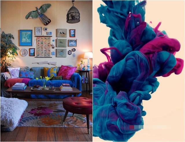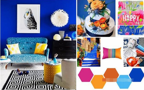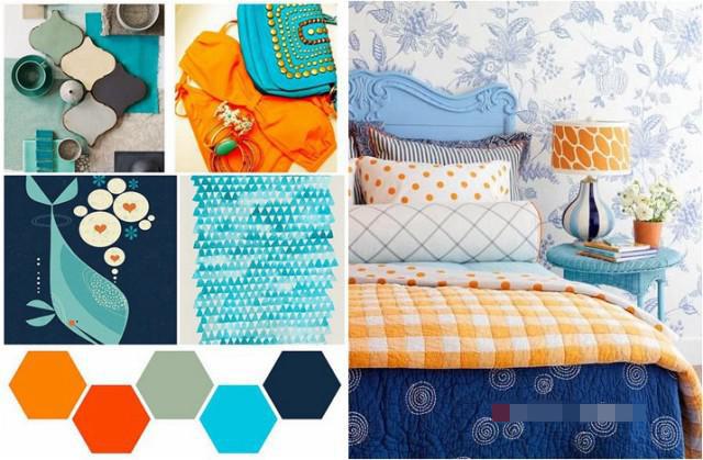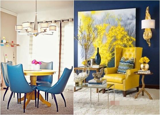 藍色與枚紅色、黃色搭配讓空間充滿時尚、青春活力,配以深藍色和白色讓空間沉穩(wěn)安靜下來,比例很重要。