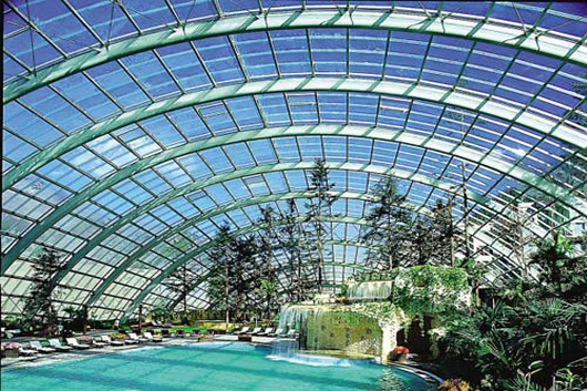 第一次工業革命后,18世紀倫敦世博會,英國為了展示其工業發達程度建造了一個占地8萬平方米的展覽館。其主角是純鋼結構的玻璃建筑,是早期鋼結構陽光房的顛峰之作。在這個階段鋼材的大量生產運用,使早期陽光房的覆蓋面進一步擴大。我們可以在美國故事片《音樂之聲》《時光機器》等影片中找到鋼結構陽光房。