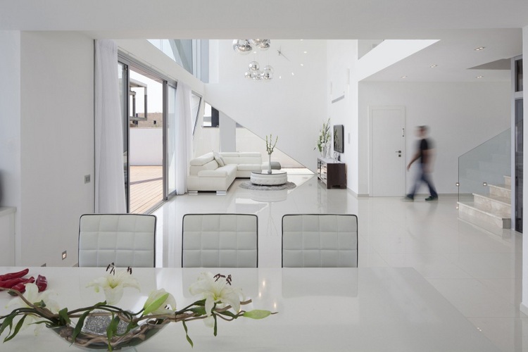 別墅設(shè)計,阿什杜德別墅(House in Ashdod)這幢獨特的現(xiàn)代別墅位于地中海沿岸的以色列西岸港市阿什杜德。這是一幢很有個性的建筑設(shè)計,白色立面的結(jié)構(gòu)仿佛是給住宅建筑裹上的外衣。兩層高的生活空間采用了大面積玻璃,室內(nèi)通透明亮。光束穿過白色立面的框架結(jié)構(gòu)在室內(nèi)形成各種形狀的光亮和陰影,如同一場光與影的游戲。