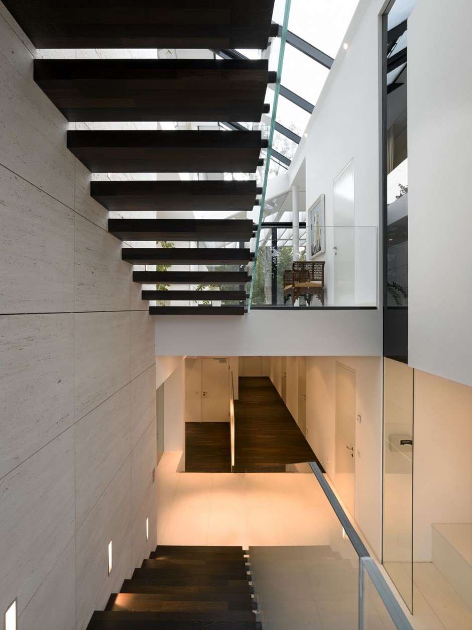 在電訊小池塘one is invited to take a view of the市全景breathtaking之前進入中央大廳of the House。following the topography of the site is the House部分caved in the ground。餐飲區with an open the廚房is reached by taking a few steps down from the中央大廳。有一對夫婦從of steps導致area where one can舒適沙發或椅子的休息室休息室on the overlooking the游泳池和enjoying the view over the市好了。地板材料是distinguished according to level and函數。